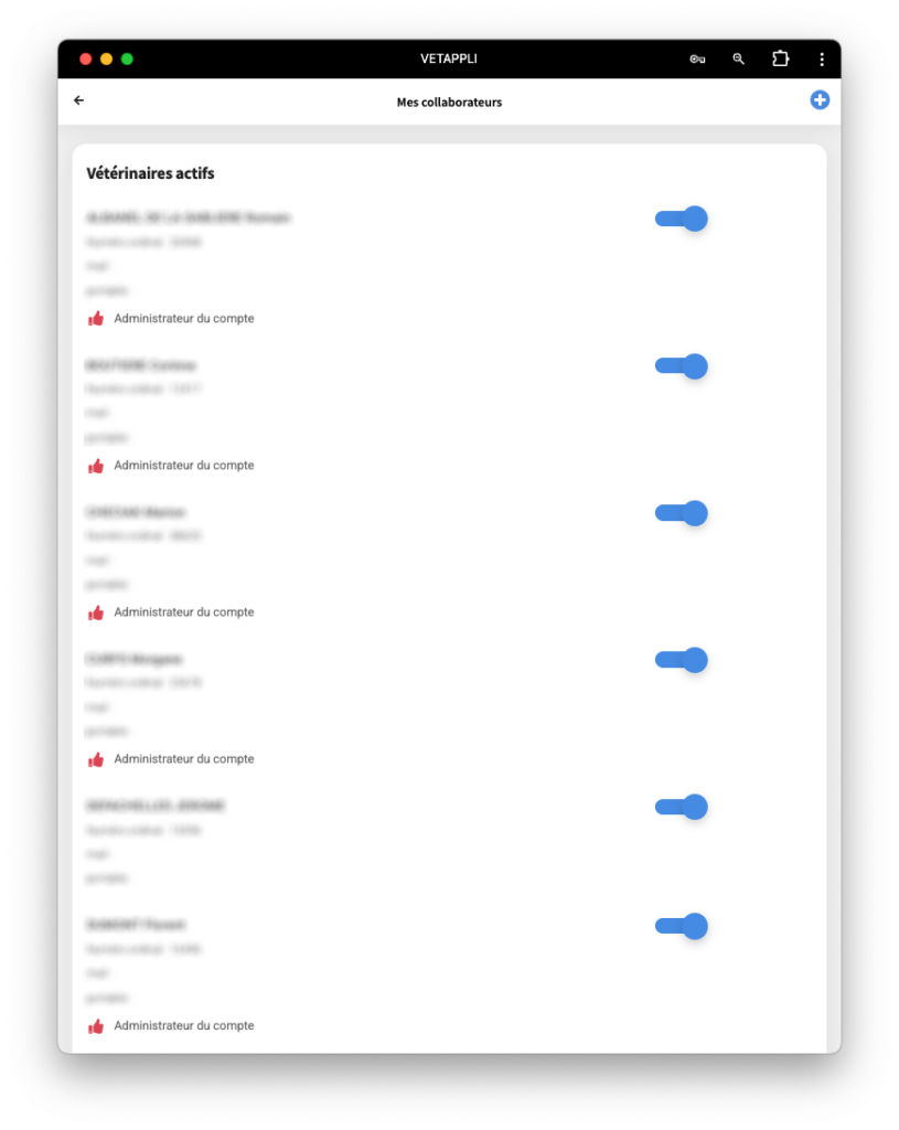 Pour vérifier que tous les vétérinaires de votre structure sont enregistrés dans l’application, il vous suffit de cliquer simplement sur « Liste des vétérinaires ».