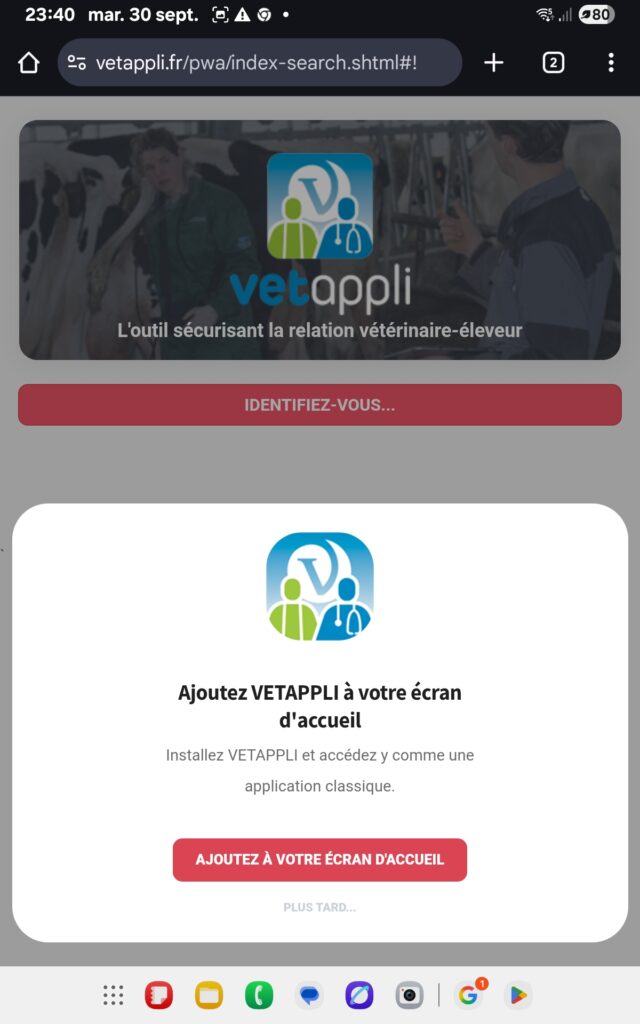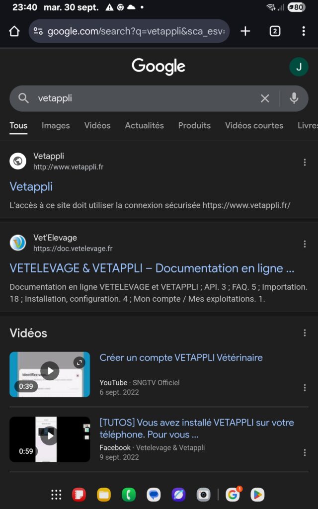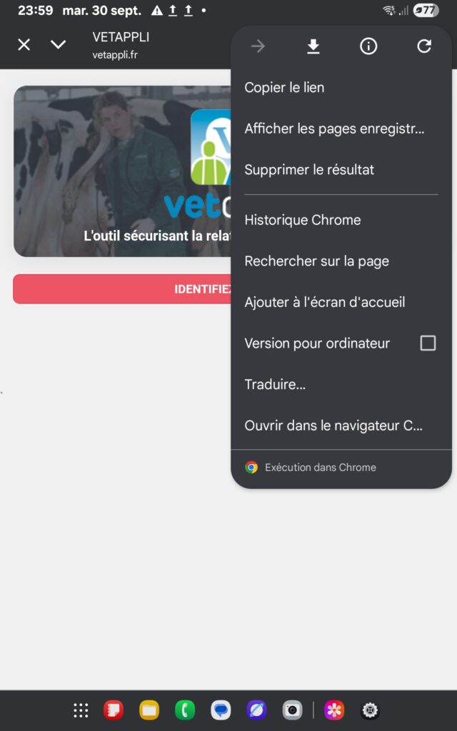 Ouvrir le navigateur Chrome et rechercher vetappli.fr
