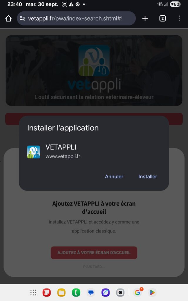 Un menu apparaît pour vous permettre d’installer l’application comme une application classique.