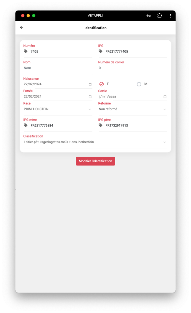 Vous pouvez voir la fiche d’identité de l’animal en cliquant sur « Voir » pour le sélectionner.