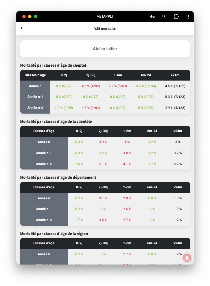 Vous allez avoir accès aux données mortalités des différents ateliers de l’exploitation réparties par tranche d’âge.