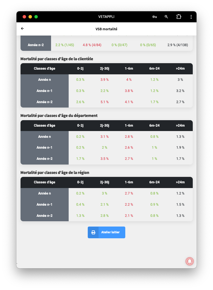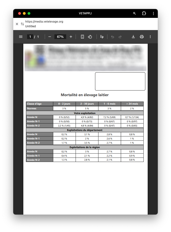 Pour le comparatif à l’ensemble de vos élevages sanitaires, cette donnée apparaît à l’écran mais n’est pas reprise dans le fichier PDF que vous pouvez remettre à l’éleveur.